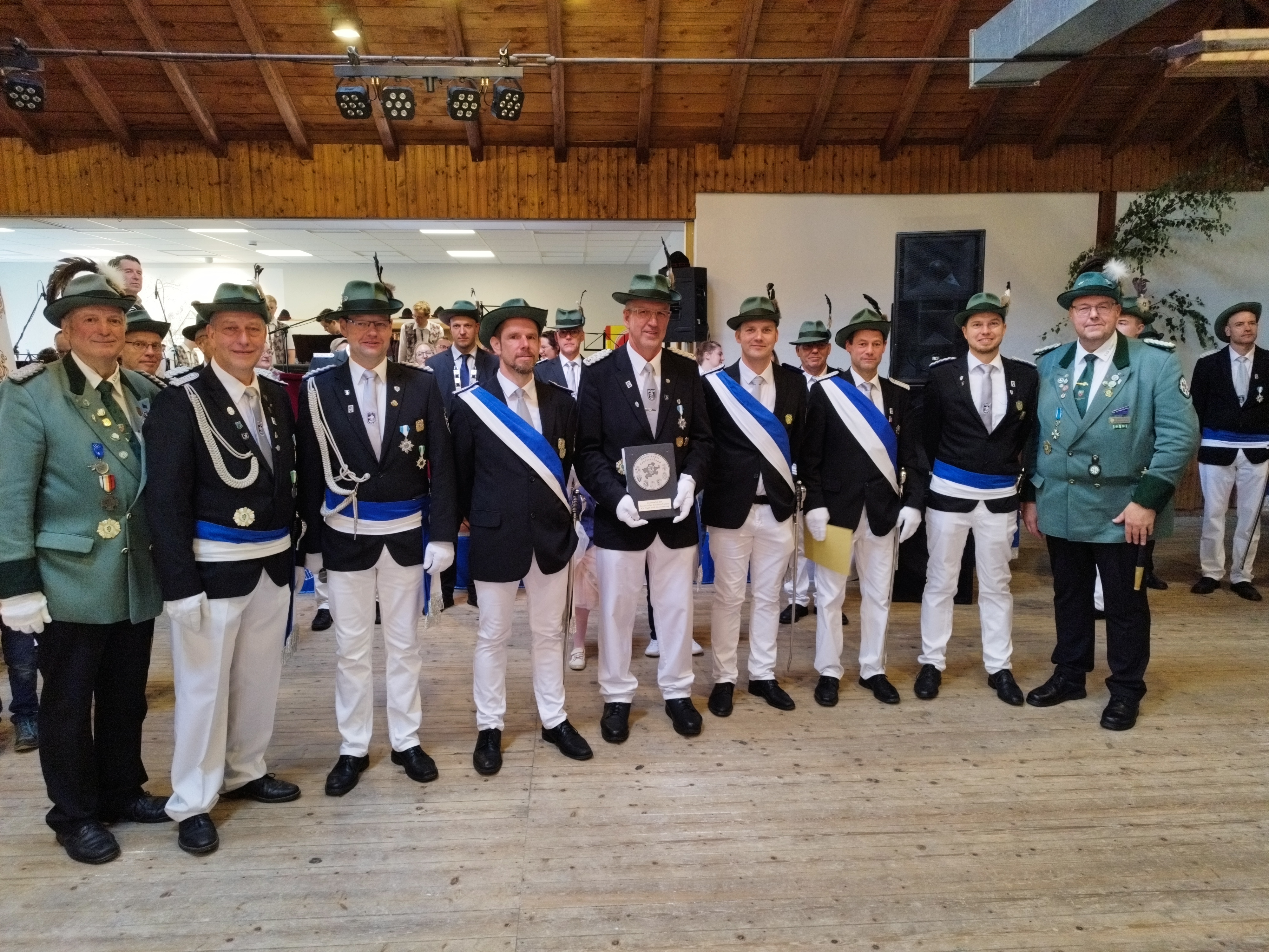 Am Sonntag standen die Ehrungen verdienter Vorstandsmitglieder im Mittelpunkt. Für ihre außergewöhnliches Engagement erhielten sie Auszeichnungen, darunter der Orden für Verdienste welcher an Marcel Flock als Zugführer verliehen wurde. Mit dem Orden für besondere Verdienste wurden Markus Luis als 2. Fahnenoffizier der alten Fahne, Markus Arens als 1. Fahnenoffizier der neuen Fahne und Christian Göke als Schriftführer geehrt. Ein weiterer Höhepunkt war die Verleihung der Ehrentafel des Sauerländerschützenbundes an Josef Ising, der als Ehrenvorstand und Hallenwart stets mit großem Einsatz für den Verein tätig ist. Die Ehrungen wurden durch Franz-Josef Rickert und Willy Frese vom Kreisschützenbund (KSB) vorgenommen.